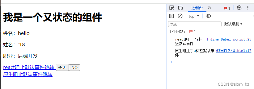 //另外再react中组织默认时间不能通过直接在html上返回false要使用preventDefault
