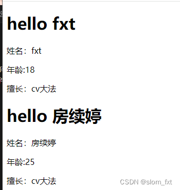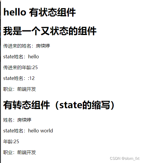 ReactDOM.render(<Hello2 name='房续婷' age='25' />, document.getElementById('root2'))