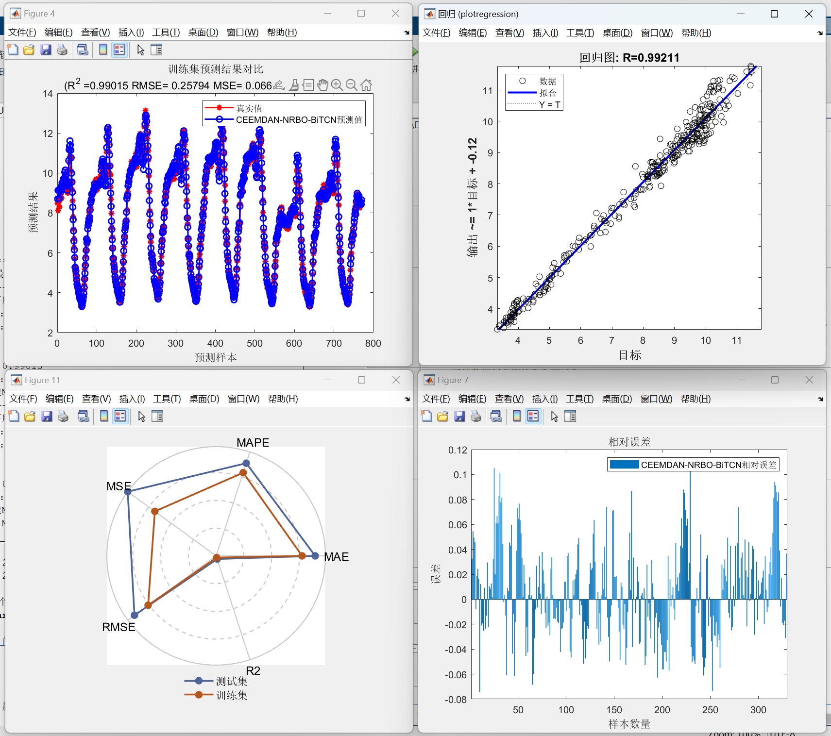 [独家原创]CEEMDAN-NRBO-BiTCN多变量回归预测 (多输入单输出) Matlab代码