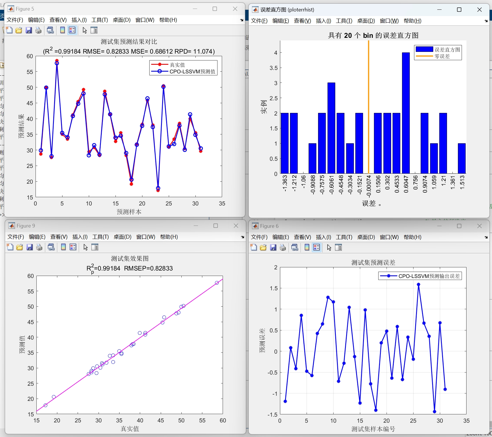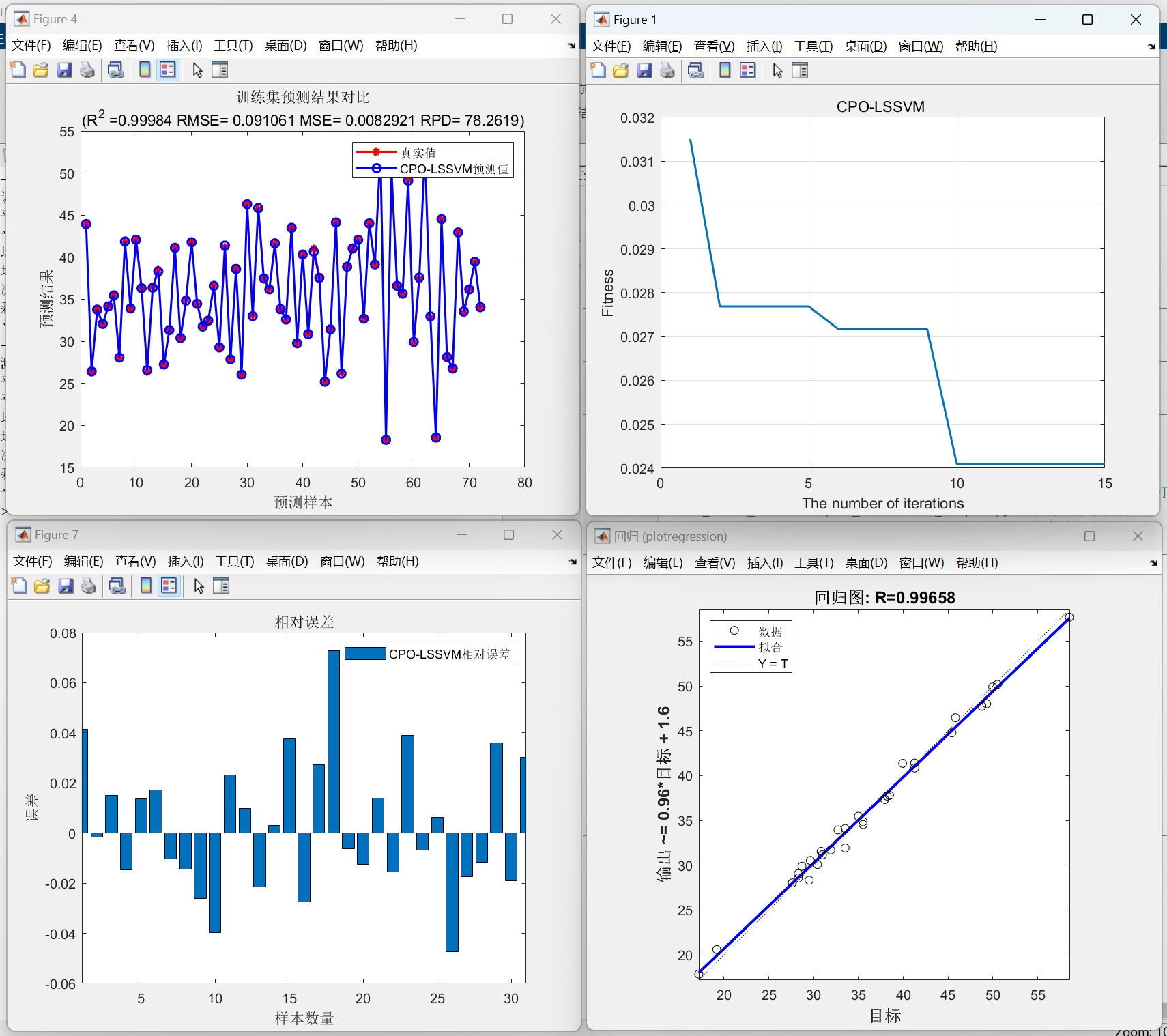 Matlab 基于冠豪猪算法优化最小二乘向量机(CPO-LSSVM)的数据多变量回归预测 (多输入单输出)