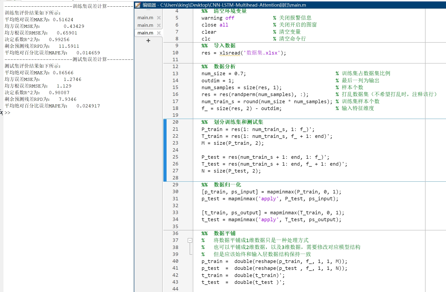 CNN-LSTM-Multihead-Attention多变量回归预测 Matlab代码 (多输入单输出)
