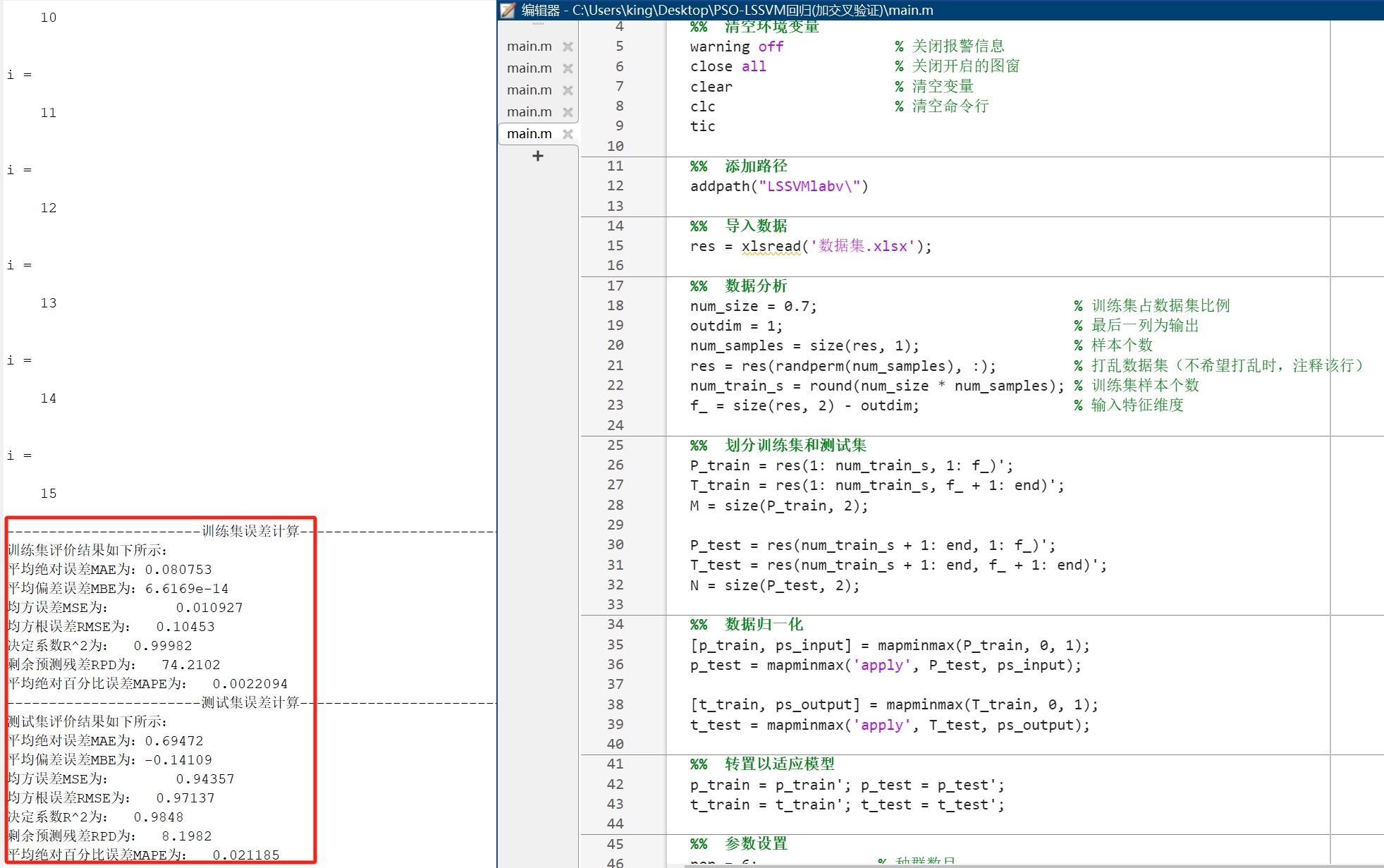 PSO-LSSVM回归+交叉验证(可自定义修改折数1-10) Matlab代码 (多输入单输出)