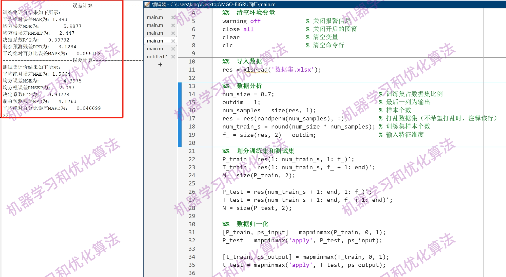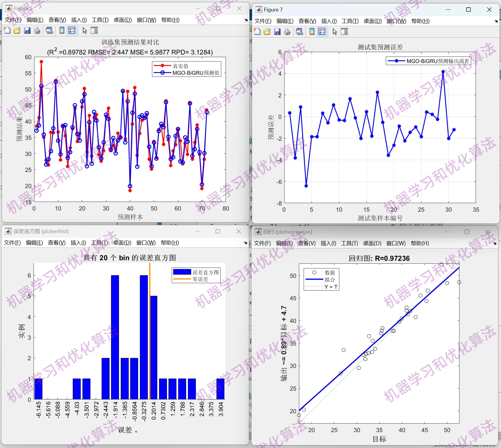 Matlab 基于苔藓生长算法优化双向门控循环单元(MGO-BiGRU)多变量回归预测 (多输入单输出)