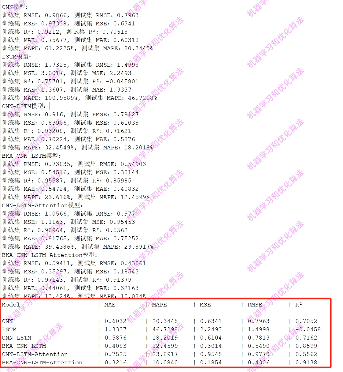每个模型的预测结果和组合对比结果都有!