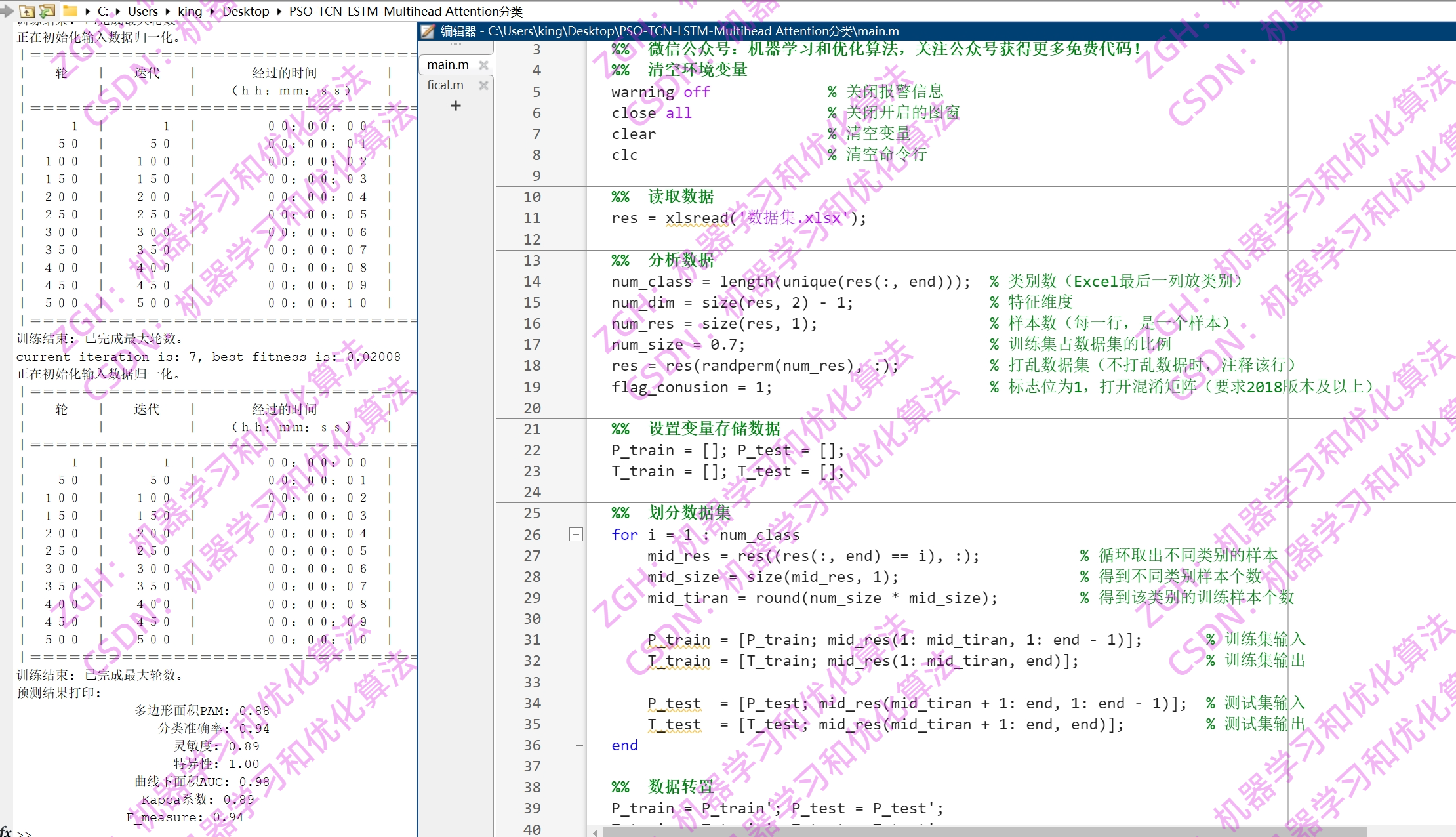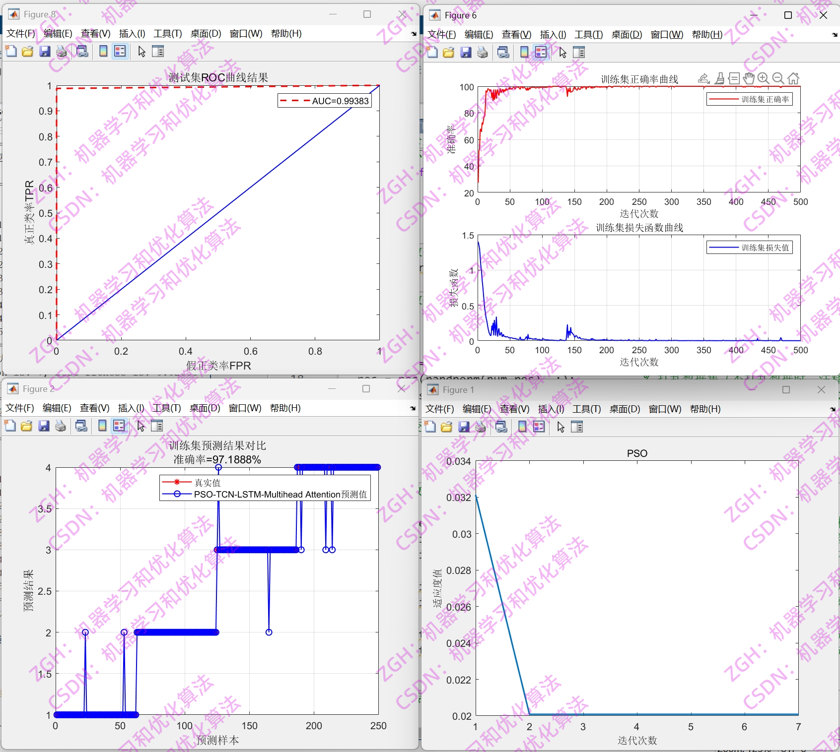 [原创]基于粒子群算法优化优化时间卷积网络结合长短期记忆神经网络结合多头注意力机制(PSO-TCN-LSTM-Multihead Attention)的数据多特征分类预测 Matlab代码