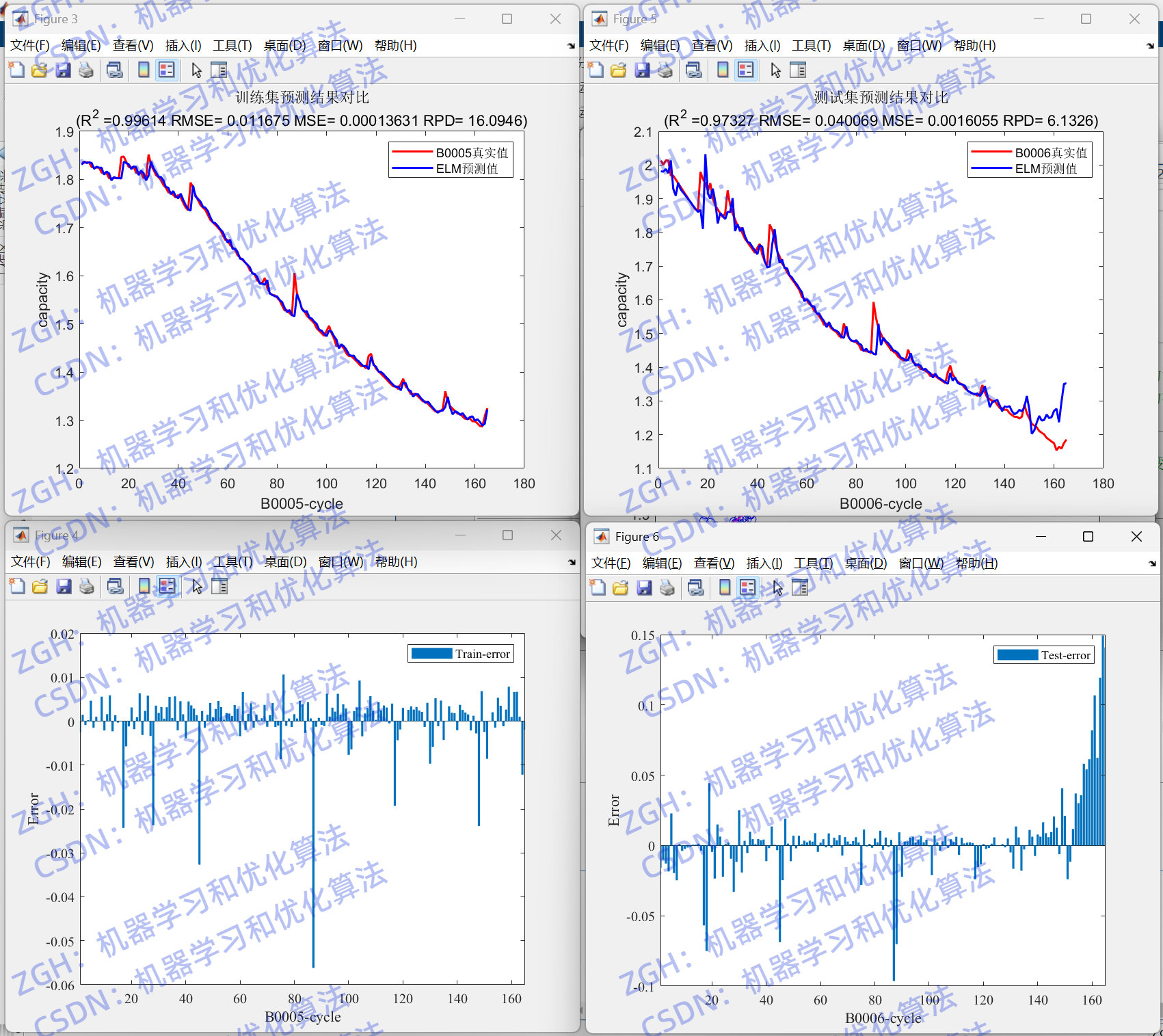 预测,本代码采用NASA的B0005号和B0006号电池数据作为数据集。
