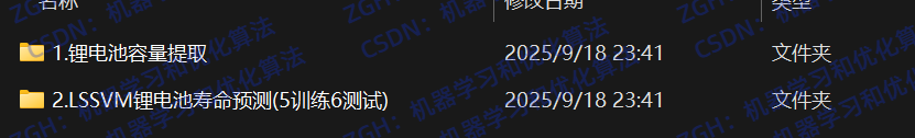 1、内含“电池容量提取”和“锂电池寿命预测”两个部分完整代码和NASA的电池数据