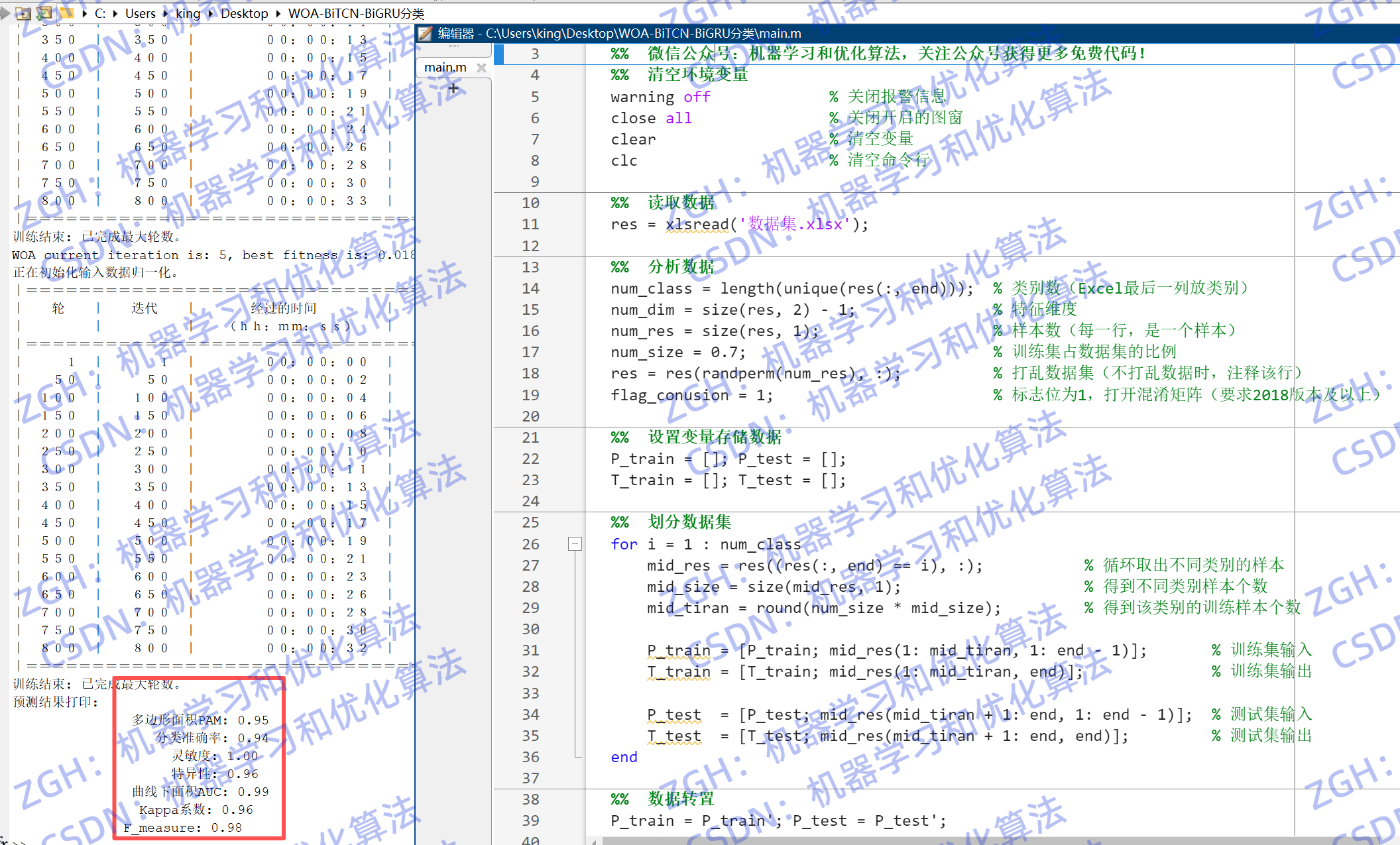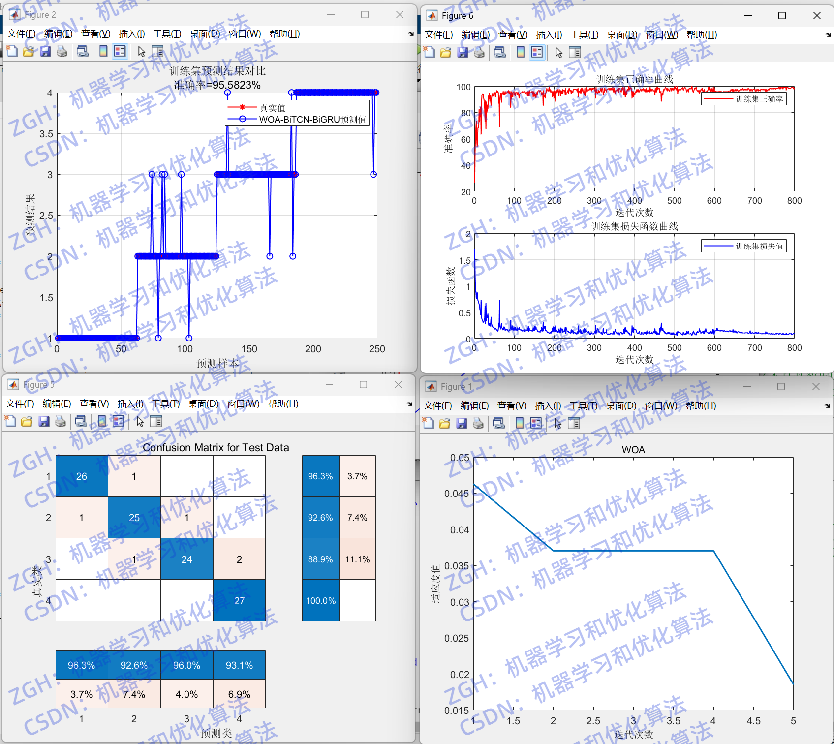 基于WOA-BiTCN-BiGRU分类 鲸鱼算法-双向时间卷积网络-双向门控循环单元的数据分类预测
