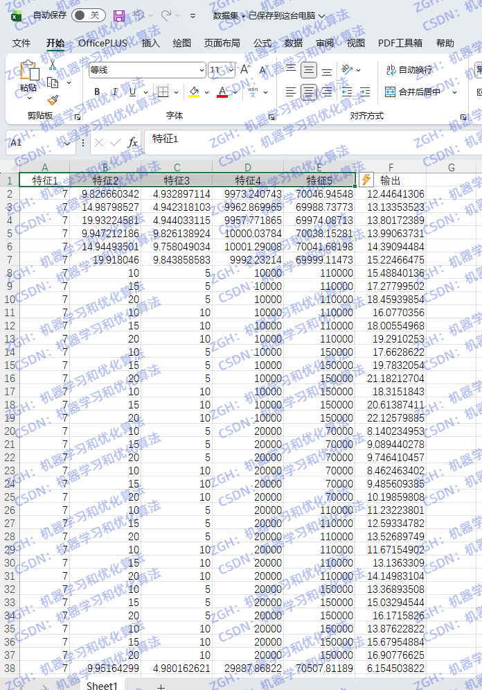 本程序数据采用FO工艺数据库,输入特征为:涵盖膜面积、进料流速、汲取液流速、进料浓度及汲取液浓度。