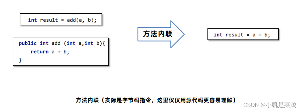 方法内联(Method Inline):方法体中的字节码指令直接复制到调用方的字节码指令中,节省了创建栈帧的开销。