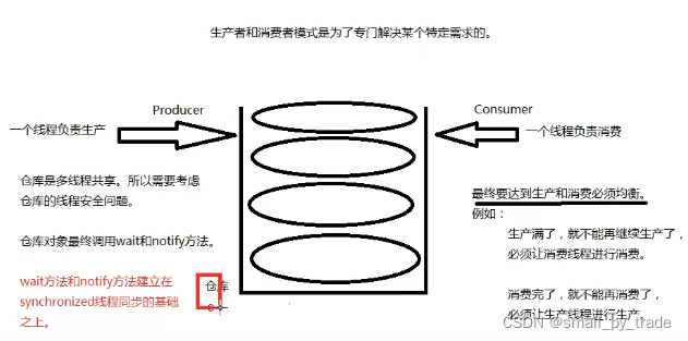 一个线程负责生产,一个负责消费,最终需要达到生产消费相平衡。如图所示: