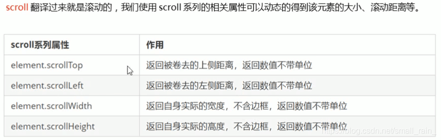 本文详细讲解了元素偏移量(offset)、client系列用于获取尺寸、scroll系列用于处理滚动,涉及鼠标位置获取、动画封装与节流技术。涵盖了滚动监听、鼠标事件、缓动动画和网页特效案例,如轮播图的实现与滚动至顶部功能。