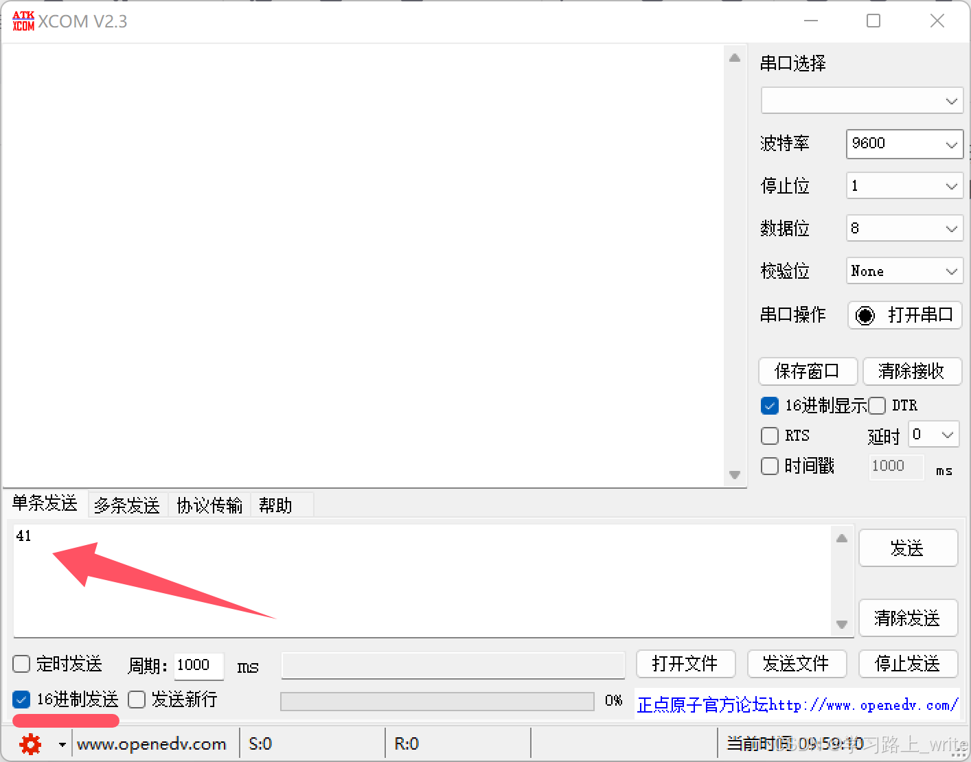 右图是 左图的基础上 点 以16进制发送对应是 41 (发送的二进制数据是0100 0001)已验证,确实如此