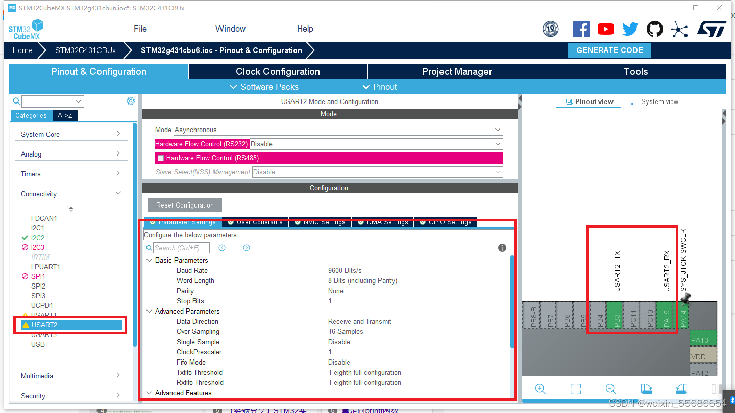 一、STM32CubeMX配置串口配置好时钟后,选择你的串口,生成代码。