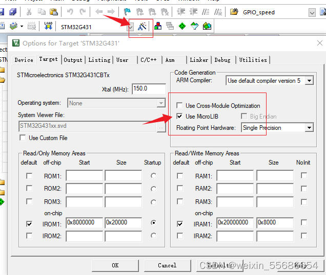 在keil中点击魔术棒,如下按钮 ,进入项目参数设置界面,在Target下勾选上Usb MicroLIB !!!实测发现不勾选会卡死在printf函数这里