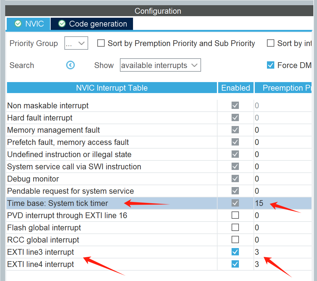 - 配置 NVIC 的中断使能和优先级(即你在 CubeMX NVIC 界面中设置的参数)。