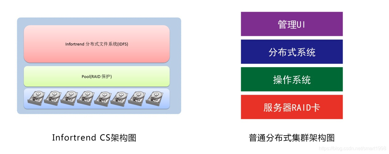 CS之所以有如此多的创新和亮点,源于CS是嵌入式存储系统,从底层的RAID到分布式文件系统全部是Infortrend自己研发,实现了全面产品化。这就与市面上普通的分布式集群区别开来,我们的CS是真真正正的一个整体,所有架构都集成在控制器,绝不是东拼西凑起来的。在部署的时候,用户不需要依赖专业的工程师通过复杂的命令进入到系统内部分别设置,而是通过我们图形化的管理界面,按照部署向导,简单到点击就可以完成。将原来几个星期的部署过程,缩减到短短二三十分钟。部署之后的日常管理也变得更加轻松,再也不用仅仅改动简单的设置,就去迁移整个部署。用户想要的所有操作,在统一的管理界面都可以实现。