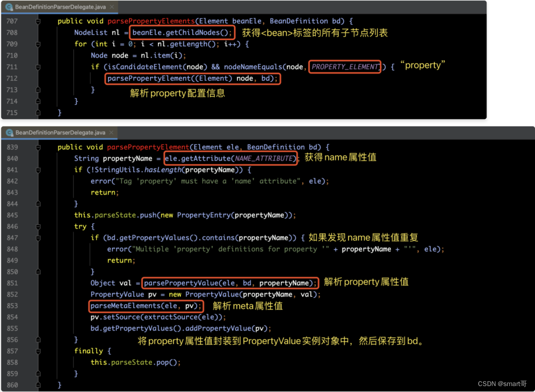那么解析property子元素的源码如下所示: