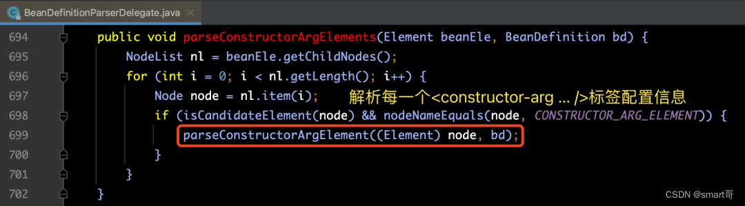 下面是parseConstructorArgElements(ele, bd)方法的源码实现: