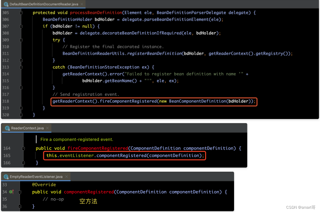 6> 通知监听器,解析完成(Spring没有实现内部逻辑)。
