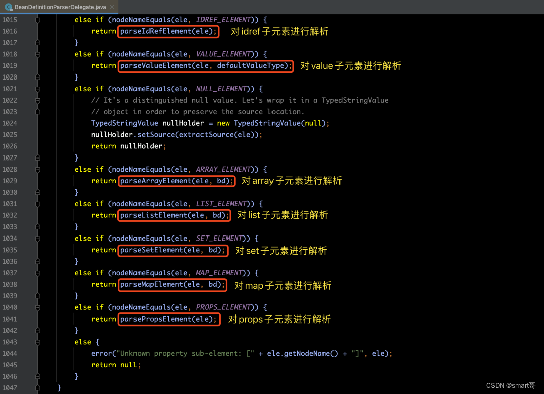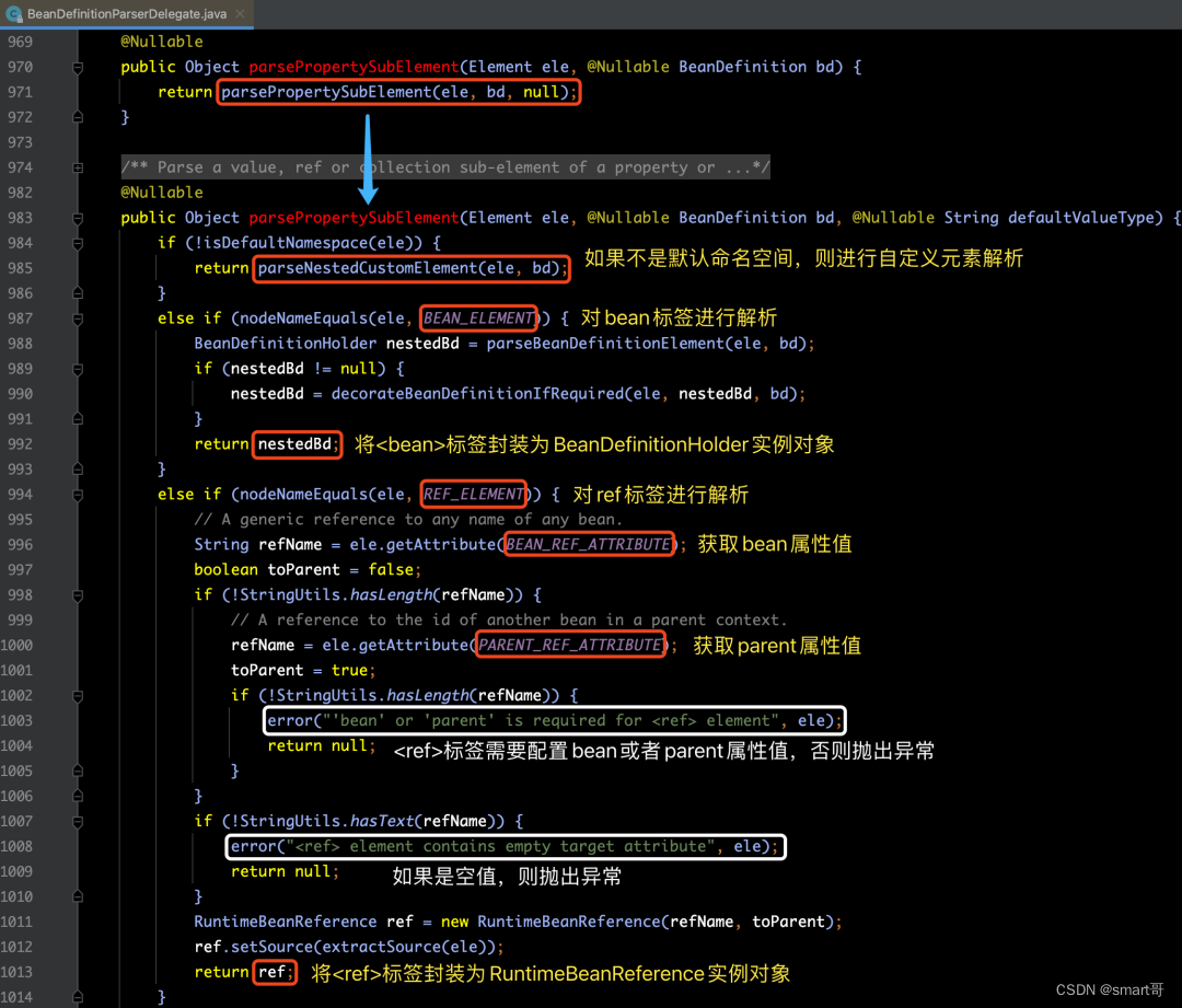 那么关于上图蓝色框所标注的parsePropertySubElement(subElement, bd)方法,我们来看一下它的具体实现: