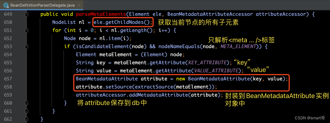 下面我们在来看一下元数据解析方法——parseMetaElements(ele, bd);再介绍源码之前,我们先来看一下Spring中的meta标签使用方式如下: