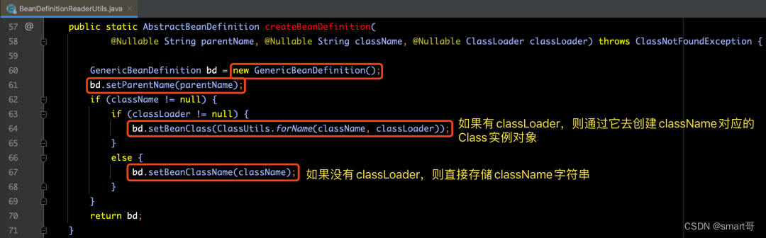 通过上图源码,我们可以看出来createBeanDefinition(...) 方法执行了很简单的 4步 操作: