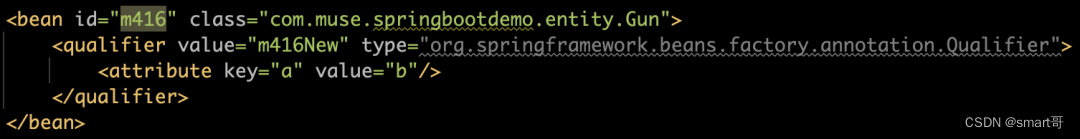 <bean id="gun" name="m416, ak47" class="com.muse.Gun" />