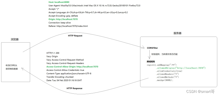 当浏览器发现发起的ajax请求是简单请求时,会在请求头中携带一个字段:Origin.