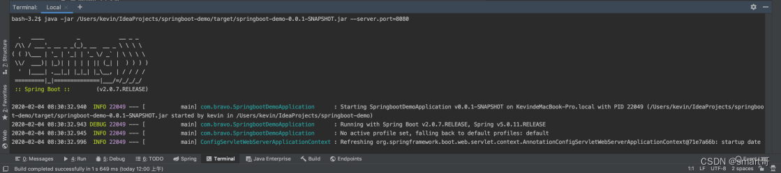 java -jar /Users/kevin/IdeaProjects/springboot-demo/target/springboot-demo-0.0.1-SNAPSHOT.jar --server.port=8080