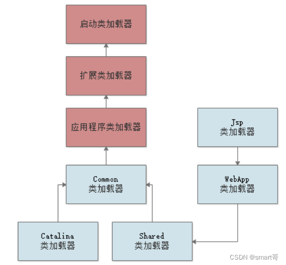 至于Jsp类加载器,则是给每一个JSP都准备了一个Jsp类加载器。