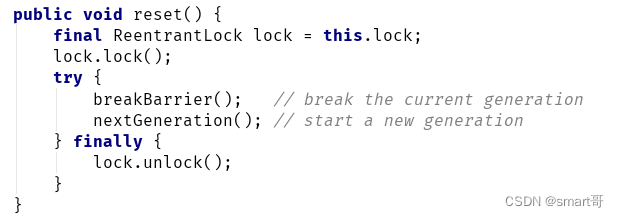 再来看下 CyclicBarrier 的 reset 方法: