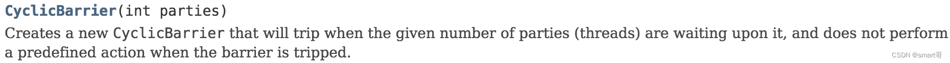 | parties | 栅栏开启需要的到达线程总数 |