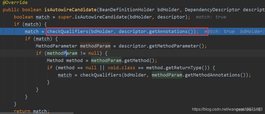 其实内部是在DefaultListableBeanFactory的findAutowireCandidates的判断isAutowireCandidate的内部检查的: