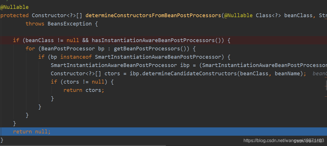 SmartInstantiationAwareBeanPostProcessor的determineCandidateConstructors
