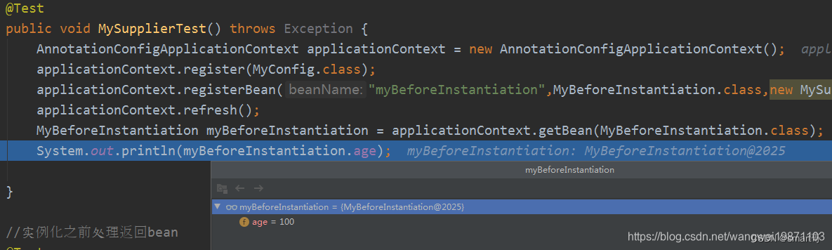 MyBeforeInstantiation myBeforeInstantiation = applicationContext.getBean(MyBeforeInstantiation.class);