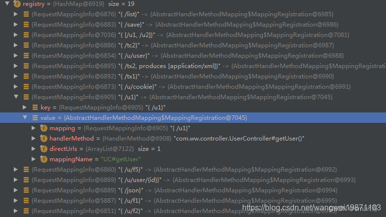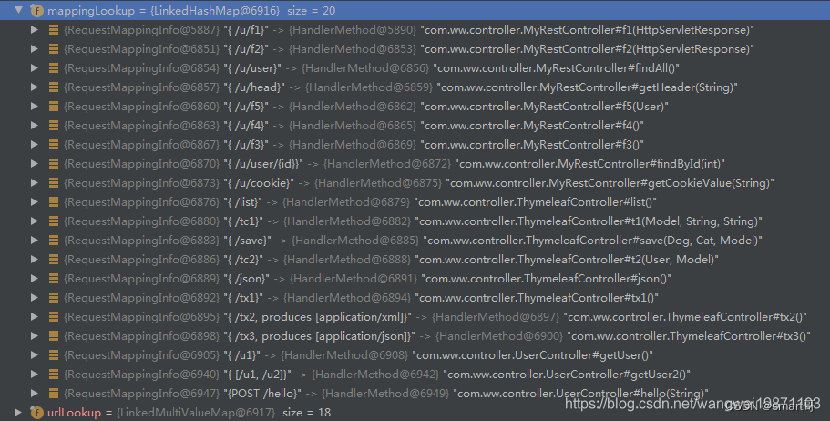 mappingLookup的RequestMappingInfo和HandlerMethod映射