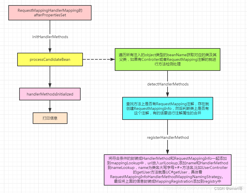 至此RequestMappingHandlerMapping的一些初始化设置讲完了,这样我们再回去分析是怎么获得映射的就很容易理解了。