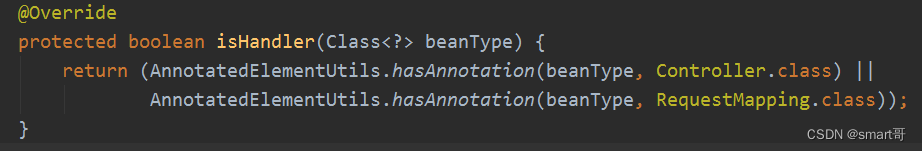其实这里是或的关系,所以只要有RequestMapping注解,只要能放进容器里,有@Component就够了,就可以加载到,就可以处理请求。