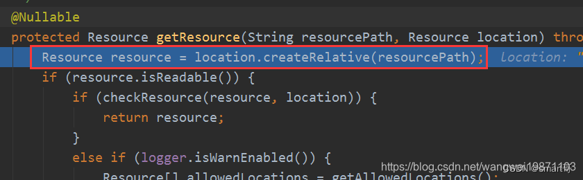 Resource resource = getResource(pathToUse, location);//获得资源,用URL读取