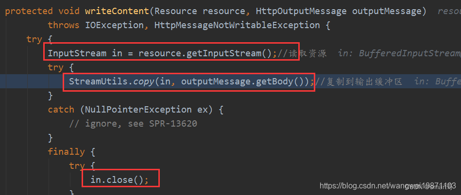 内部就是读资源,然后写入输出流中: