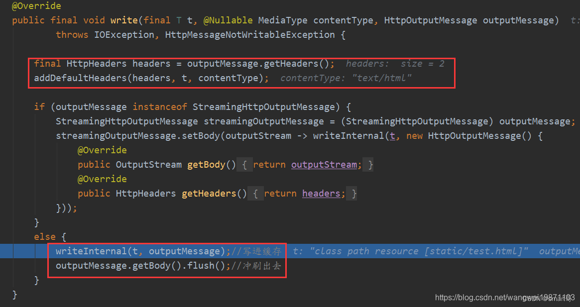 资源获取到了,要写出去呀,就是调用AbstractHttpMessageConverter的write方法,添加好内容头信息,然后写入输出缓存,并刷出去。