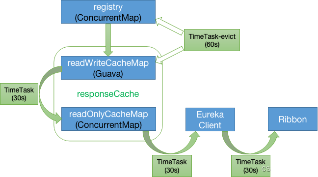 Eureka Server采用一种多级缓存机制来保存服务注册表,如下图: