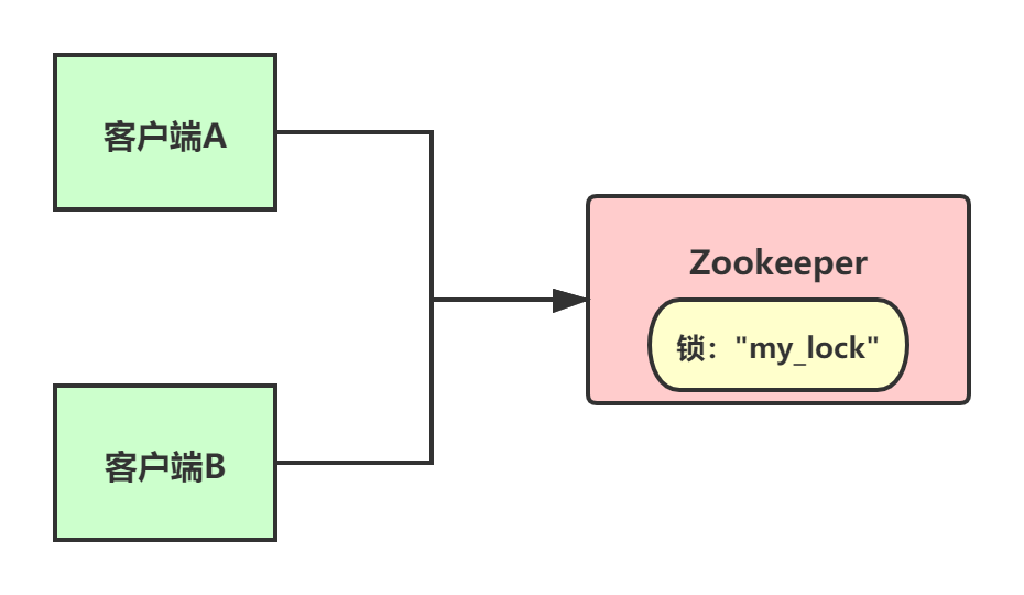 上图中,ZK里有一把锁“my_lock”,这个锁其实就是ZK的一个znode。然后两个客户端都要来获取这个锁,具体是怎么来获取呢?