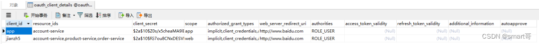 使用jwt的话只需要在数据库存储一下client信息即可,所以我们只需要保留数据表oauth_client_details。