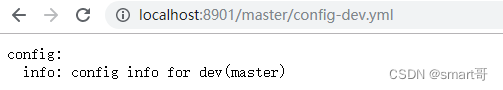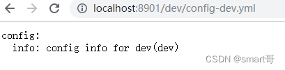 - 访问http://localhost:8901/dev/config-dev.yml来获取dev分支上dev环境的配置文件信息: