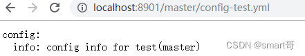 - 访问http://localhost:8901/master/config-test.yml来获取master分支上test环境的配置文件信息: