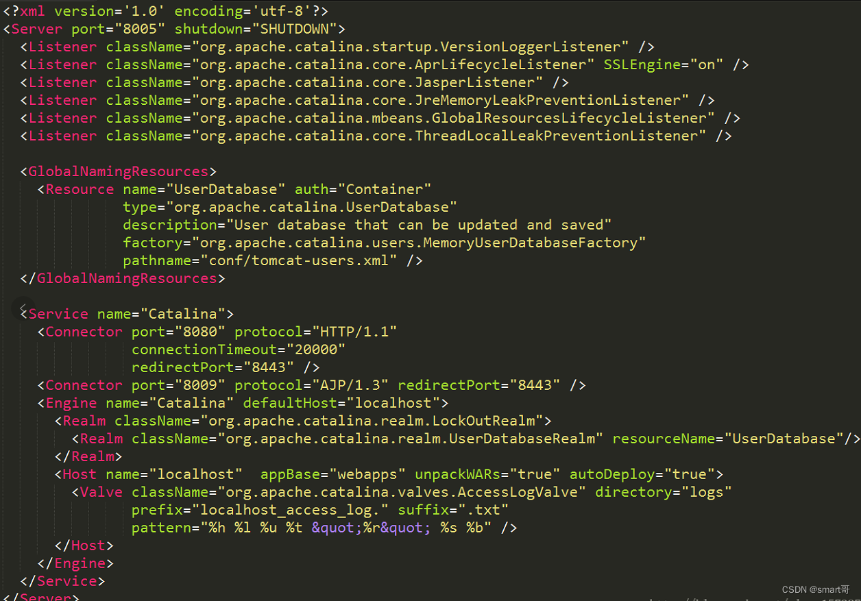 另外,上述的包含关系或者说是父子关系,都可以在tomcat的conf目录下的server.xml配置文件中看出