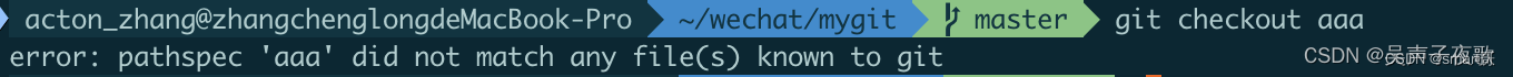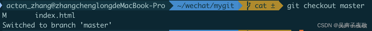 这段话有点难理解,先来看看前半段的意思。假设原本正处于cat分支,执行下面的命令后,就会由cat分支切换到master分支: