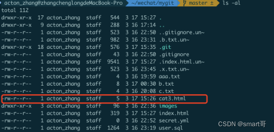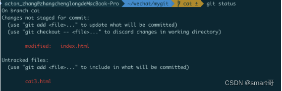可以看到,刚刚新增的cat3.html文件还在。再看一下Git的状态: